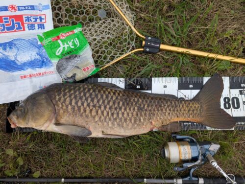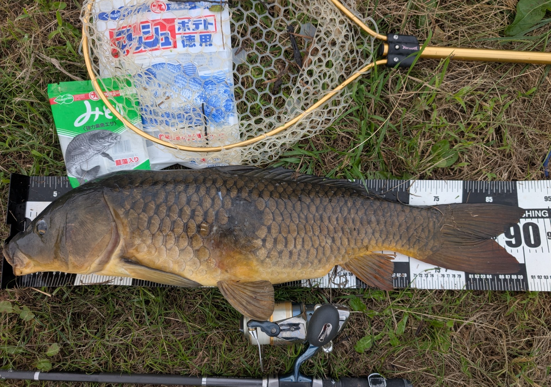 8.当日のご感想: 2匹ともウキの反応は小魚のように小さかったですが、あわせるとズドンと根掛かりのような重さと一気に走り、強い引きで楽しめました! 鯉釣り最高です!