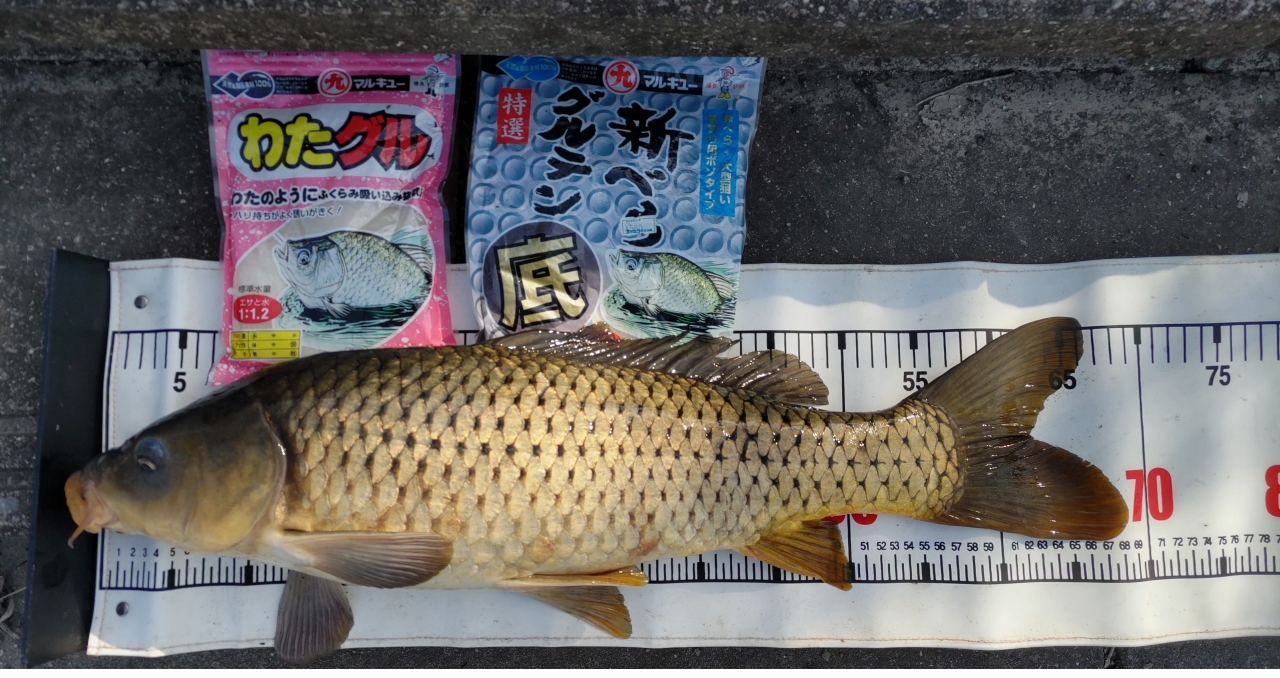 福岡県/柳川市内クリーク 九州地区 2025.12.11 1.ハンドルネーム: 向井春樹 様 2.釣行日時: 2025年11月30日 3.場所(県/釣り場名): 福岡県/柳川市内クリーク 4.写真1枚添付 5.サイズ(cm): 68cm 6.使用エサ: わたグル、 新べらグルテン底 7.使用タックル: 竿:12尺並継、 道糸:1.2号、 ハリス:0.8号 8.当日のご感想: 本日の釣果は鯉6匹、亀7匹、ヘラブナ1匹でした。