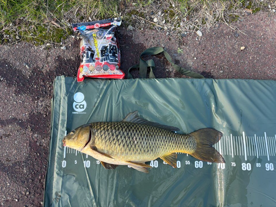 大阪府/茨木市 安威川 近畿地区 2026.01.05 1.ハンドルネーム: たくや 様 2.釣行日時: 2025年12月29日 3.場所(県/釣り場名): 大阪府/茨木市 安威川 4.写真1枚添付 5.サイズ(cm): 72cm 6.使用エサ(寄せエサ、くわせエサ): 【寄せエサ】 粒鯉 【くわせエサ】 コーン 7.使用タックル: 竿:スピニングロッド5.3、 リール:5000番、 ライン:ナイロン8号、 仕掛け:伊勢尼針12号2本針、 オモリ:20号 8.当日のご感想: 当日、5時間粘りましたが喰いが渋く1本のみの釣果となりました。