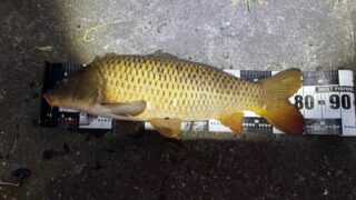 1.ハンドルネーム: M k 様 2.釣行日時: 2025年8月27日 3.場所(県/釣り場名): 群馬県/桃ノ木川 4.写真1枚添付 5.サイズ(cm): 80cm 6.使用エサ(寄せエサ、くわせエサ): 【寄せエサ】 鯉スパイス、 ムギコーン、 さなぎ粉 【くわせエサ】 いもようかん 7.使用タックル: 竿:万能ロッド3.6m、 リール:中型スピニングリール、 道糸:5号、 オモリ:10号、 仕掛け:市販の吸い込み仕掛け12号 8.当日のご感想: 朝まづめに狙いをつけて4時30分から釣行、1本目を投げてから2本目を準備している間に釣れました! まだ暗かったため、ヘッドライトを使い写真を撮りましたがうまく撮れませんでした。