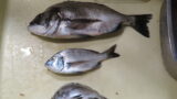 一番大きいチヌがハリを呑んでしまってスカリの中で浮いていたので持ち帰って塩焼きにして食べました。自然の恵みに感謝です。