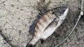 以降、たまにウキに反応があるものの明確なアタリはなく、それでも辛抱してエサ打ちを繰り返したところ、13時ぐらいに小さなアタリを捉えて35cmぐらいのキビレチヌを釣ることができました。時合と踏んでエサ打ちを続けましたが、今回はこの1枚だけでした。産卵期に釣れてくれたチヌに感謝です。
