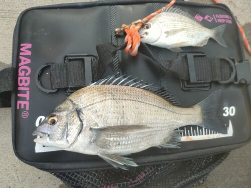 6.当日のご感想: 前日に3時間でヘダイが3匹釣れた防波堤で友人と竿を出してみました。