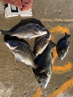 6.当日のご感想: 苦潮の影響でしょうか、沖では釣れずに、竿下で活性の高いチヌが釣れました。