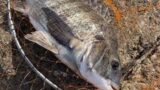 10時ぐらいだったか、モゾモゾとした前アタリの後、寝ウキが立つアタリがあり、20cmほどのチヌが釣れました。魚が集まってきたようで、ここから2時間ぐらいでチヌを3枚釣ることができました。