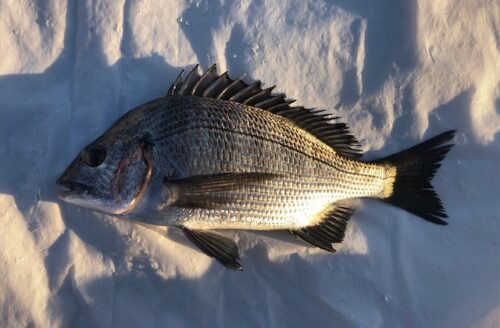 6.当日のご感想: お試しでやってみた新規開拓場所の短時間の釣りでしたが、小ぶりなチヌが1枚釣れてくれました。