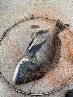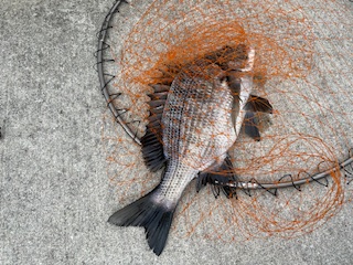 5.使用タックル: 竿:磯竿5.0m、 リール:スピニングリール2500番、 ウキ:寝ウキ、 道糸:3.0号、 ハリス:2.5号 1.5ヒロ、 ハリ:チヌバリ3号、 タナ:ハワセ