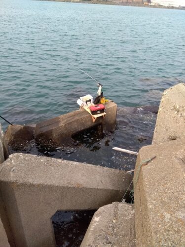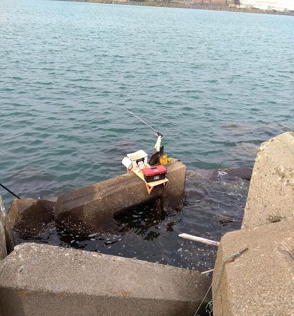 紀州釣りの特性上、ラインメンディングをする際に潮の流れに合わせて釣り人が左右に動ける必要があり、消波ブロックの平らな面が河に対して平行になっている場所でしか釣りができません。・・・と言うような理由のためだと考えていますが、休日でもここで釣りをする人はまばらで、ましてや紀州釣りをする人などほぼいません。それだけに釣り荒れておらず、チヌの魚影は濃い場所です。私も普段は限られた足場の良い場所で主に杓を使った遠投で紀州釣りをしていますが、フカセ釣りで実績のある、足場がもうひとつの場所で何とか紀州釣りができないものかと以前から考えていたのですが、今回、果敢に挑んでみました。