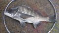 ほどなく、2匹目を釣りあげた11時、予報通り、雨がバラつき始め、風が止む。上空を見ると、雲が渦を巻き、風向きが一気に変わり、波立ちと強風で終了。