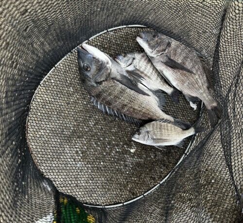 5.使用タックル: 竿:チヌ竿1.2号-53、 リール:レバーブレーキリール、 道糸:2.5号、 ハリス:1.75号2.5m、 ハリ:チヌ針2~4号、 ウキ:自作寝ウキ、自作自立ウキ、 棚:底トントン、 オモリ:なし~BB
