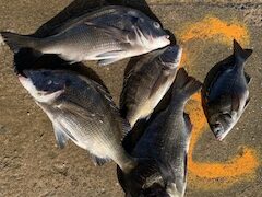 1.ハンドルネーム: ジェイ 様 2.釣行日時: 25年8月2日(土) 3.場所(県/釣り場名): 大阪府/大阪湾 北港 4.使用エサ: 【ダンゴエサ】 波止ダンゴチヌ、 荒びきさなぎ、 押し麦、 アミエビ 【付けエサ】 ガツガツコーン、 くわせオキアミスーパーハード、 荒食いブラウン、 エサ持ちイエロー 5.使用タックル: 竿:磯竿5.0m、 リール:スピニングリール2500番、 ウキ:寝ウキ、 道糸:2.5号、 ハリス:1.5号 2ヒロ、 ハリ:チヌバリ2号、 タナ:トントン 6.当日のご感想: 苦潮の影響でしょうか、沖では釣れずに、竿下で活性の高いチヌが釣れました。