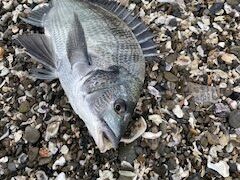 1.ハンドルネーム: シルバーブラック 様 2.釣行日時: 25年7月18日(金) 3.場所(県/釣り場名): 高知県/宿毛湾 波止 4.使用エサ: 【ダンゴ】 波止ダンゴチヌ、 荒びきさなぎ、 押し麦、 アミエビ 【付けエサ】 ガツガツコーン、 くわせオキアミスーパーハード、 荒食いブラウン、 エサ持ちイエロー 5.使用タックル: 竿:磯竿5.3m、 リール:スピニングリール2500番、 ウキ:寝ウキ、 道糸:3.0号、 ハリス:1.7号1ヒロ、 ハリ:チヌバリ3号、 タナ:ハワセ 6.当日のご感想: 大雨の水潮の影響でしょうか、チヌが小さいかったです。