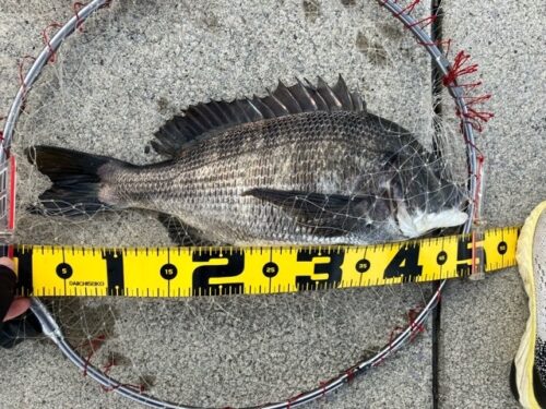 引きは強烈で、まるで長靴でも掛けたかと思うほどの重さ。見事に太ったクロダイを釣り上げることができました。