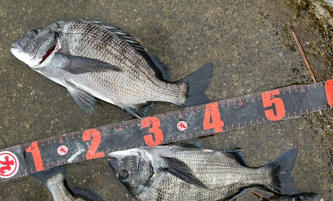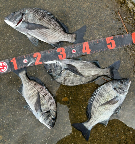 6.使用タックル: 竿:チヌ竿0-5.3、 リール:レバー付きスピニングリール、 ウキ:棒ウキ3B、 道糸:1.5号、 ハリス:1.5号、 針:チヌ針2号