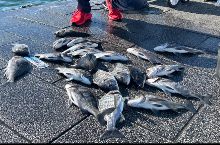 マキエが半分近く残っていましたが、スカリもストリンガーと満員御礼になったので納竿としました。
