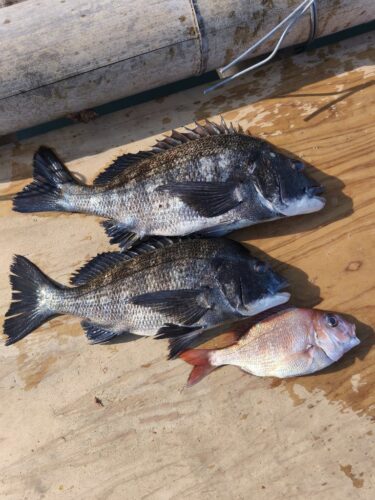 フグが多かったですが潮変わりのタイミングで2枚釣れました。1枚は50センチの年無しで幸先のいいスタートとなりました!