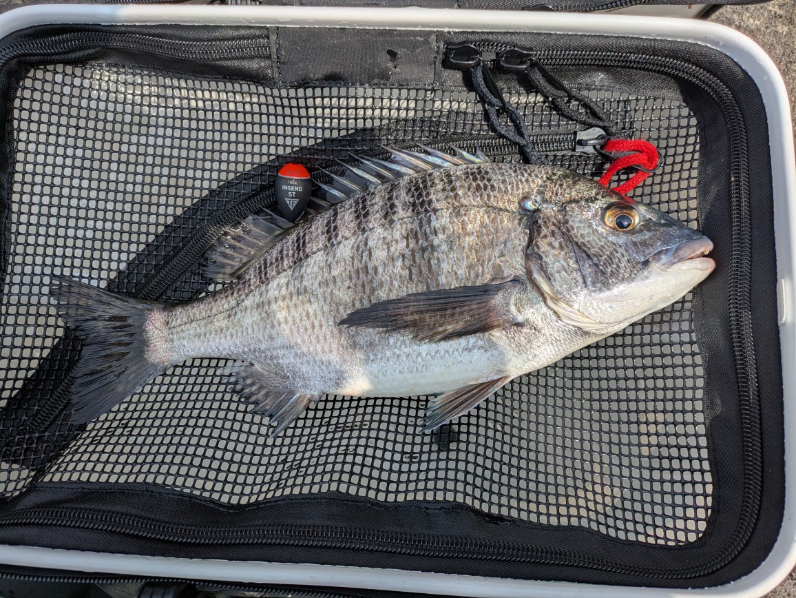 魚の活性が低く付けエサが残ることが多かったですが、アタリが出始めた一瞬に40cm前後のクロダイを釣ることが出来ました。
