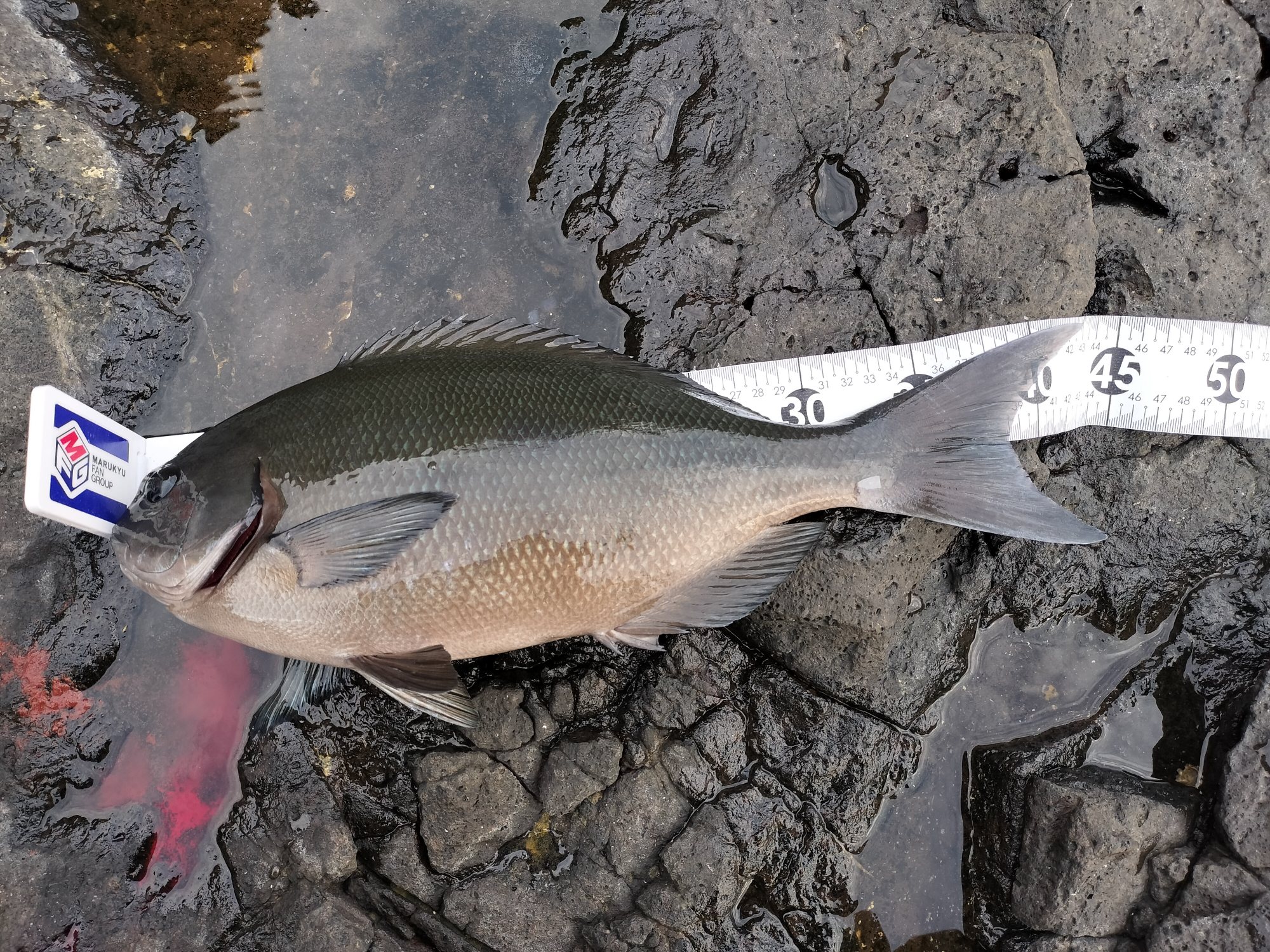 6.使用タックル: 竿:磯竿1.5号5.3m、 リール:レバーブレーキリールC3000XXG、 道糸:ナイロン、 ハリス:フロロカーボン2.5号通し、 ハリ:グレ鈎7~8号、 ウキ:0~00号