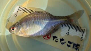 1.ハンドルネーム: 釣り好きあんちゃん 様 2.釣行日時: 2026年01月19日 3.場所(県/釣り場名): 東京都/某所の公園釣り場 4.写真1枚添付 5.使用エサ: グルテン1:カップ1、 卵グルテン:カップ半分、 水:1.5(やわらかめ) 6.使用タックル: 竿:90cm竹竿(自作)、 ウキ:紫陽花芯の浮き(自作)、 ハリ:自作 7.当日のご感想: 朝温かくなってきた頃の2時間勝負のなか、年明け初タナゴです。