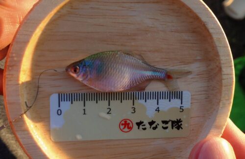 群馬県/某沼 関東地区 2025.04.17 1.ハンドルネーム: LEN 様 2.釣行日時: 2025年4月16日(水) 3.場所(県/釣り場名): 群馬県/某沼 4.写真3枚添付 5.使用エサ: グルテン5:1、 タナゴグルテン:1、 水:2.5 6.使用タックル: 竿:カーボン60cm、 仕掛け:市販仕掛け 7.当日のご感想: 強風の中短時間でしたがツ抜け出来たので楽しめました✨
