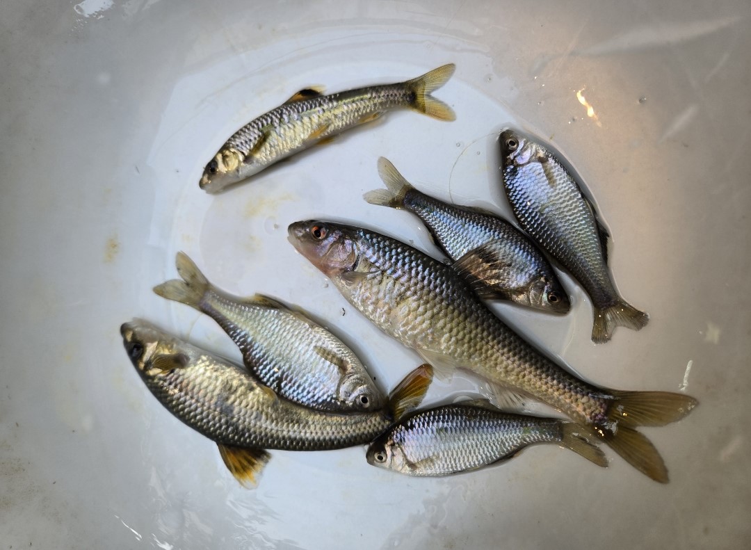 滋賀県/琵琶湖 北部漁港 近畿地区 2025.05.09 1.ハンドルネーム: haru 03 様 2.釣行日時: 25年5月8日 3.場所(県/釣り場名): 滋賀県/琵琶湖 北部漁港 4.写真2枚添付 5.使用エサ: グルテン1、 アカムシ 6.使用タックル: 竿:3.6mテンカラ竿、 仕掛け:手作りシモリ仕掛、 ハリ:秋田狐2号針 7.当日のご感想: 田圃の泥汁が少し入って湖底が見にくかった。 ビワヒガイは「グルテン1」に良く反応したけど、シロヒレタビラはアカムシの方が良い感じでした。