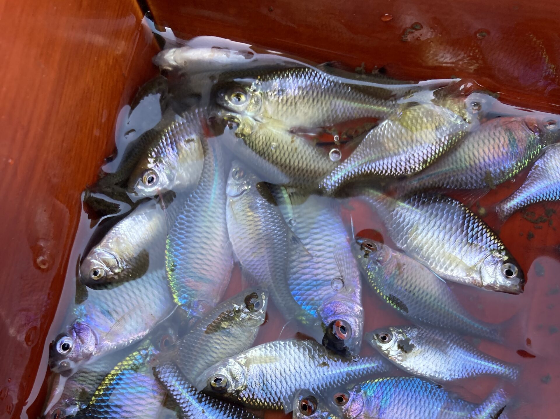 群馬県/某所 関東地区 2025.06.06 1.ハンドルネーム: SAKAHON 様 2.釣行日時: 2025年6月5日 3.場所(県/釣り場名): 群馬県/某所 4.写真1枚添付 5.使用エサ: 野釣りグルテンダントツ、 グルテンα21、 黄身練り 6.使用タックル: 竿:和竿45cm、 仕掛け:プロペラ仕掛け、 ハリ:研ぎ針 7.当日のご感想: 前日の雨で水温が下がり、激渋食いが良くない(^∇^)