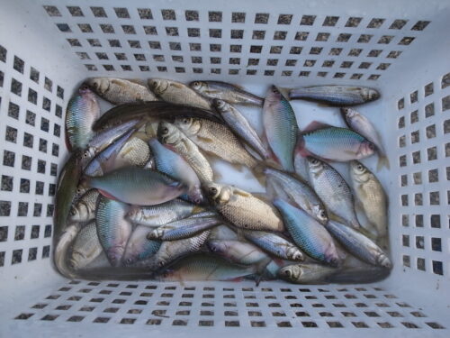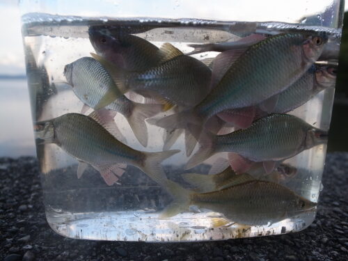 福島県/猪苗代湖 東北地区 2025.09.29 1.ハンドルネーム: papapa 様 2.釣行日時: 2025年9月26日(金) 3.場所(県/釣り場名): 福島県/猪苗代湖 4.写真2枚添付 5.使用エサ: 赤虫 6.使用タックル: 竿:2.4mカーボンロッド 7.当日のご感想: 1年ぶりの福島釣行です。 最後に移動した場所で夕方の30分でカネヒラ・ギンブナ・タモロコ・ヤリタナゴが釣れました。