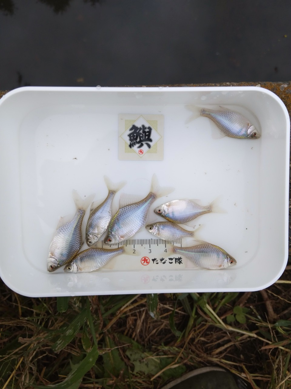 埼玉県/桶川市 某用水路 関東地区 2025.10.06 1.ハンドルネーム: ふくろう1950 様 2.釣行日時: 2025年10月3日(金曜日)13時〜15時 3.場所(県/釣り場名): 埼玉県/桶川市 某用水路 4.写真1枚添付 5使用エサ: タナゴグルテン(付属スプーンで1×水1.1 コーヒーミルで微粉砕)、 マヨネーズ少々 6.使用タックル: 竿:タナゴ竿90cm、 仕掛け:親浮き、シモリ5連、市販針 7.当日の感想: 用水路は今年初めての釣りでしたがたなごの姿が少ない。 やはり護岸工事の影響が出ている模様?何とか型を見る。