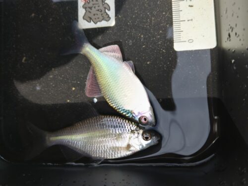 6.使用タックル: 竿:タナゴ竿70cm、 仕掛け:親浮き、シモリ5連、市販針