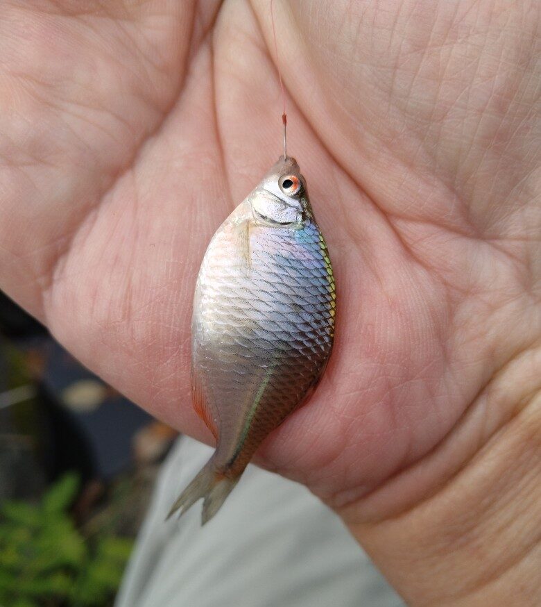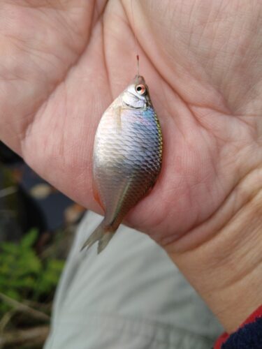 山形県/内陸 某所 東北地区 2025.10.20 1.ハンドルネーム: ねこ汰ろう 様 2.釣行日時: 2025/10/19 3.場所(県/釣り場名): 山形県/内陸 某所 4.写真4枚添付 5.使用エサ: 野釣りグルテンダントツ & グルテン系他 6.使用タックル: 竿:タナゴ専用振出竿 7.当日のご感想: 午前中は聖地白竜湖!しかし釣れるのは無限クチボソ地獄。 悔しくて次へ、しかしアタリなしスカ! 次は山側の池へ。なんとかエビの猛攻を受けながらタナゴに会えました。キモは寄せエサなのかも?