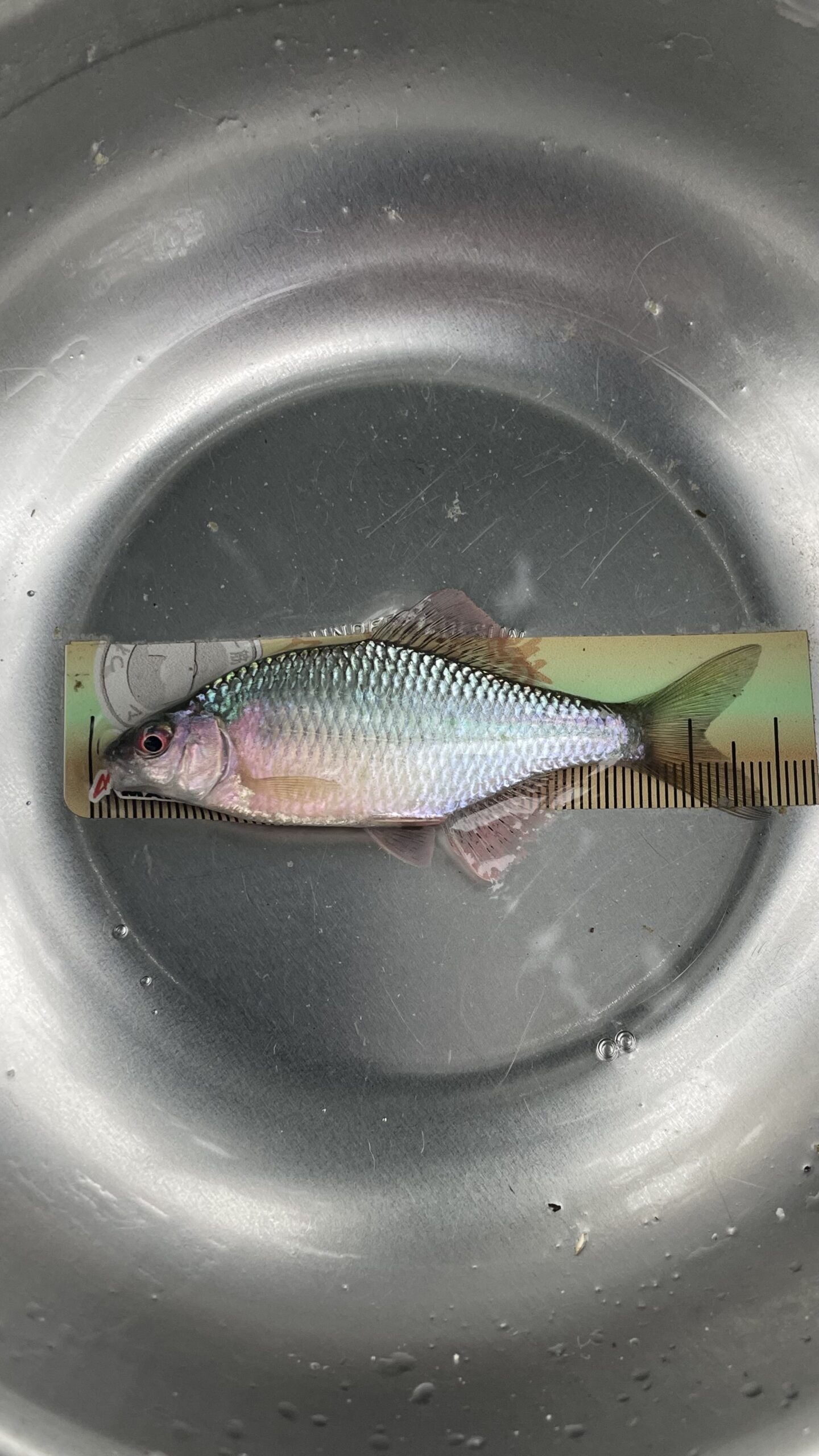 埼玉県/某沼 関東地区 2025.10.23 1.ハンドルネーム: じーふー 様 2.釣行日時: 7年10月21日 3.場所(県/釣り場名): 埼玉県/某沼 4.写真1枚添付 5.使用エサ: グルテン1 6.使用タックル: 竿:130自作、 仕掛け:プロペラ仕掛け 7.当日のご感想: 日没前の1時間1本勝負、春から通い出した沼で初めてカネヒラを釣りました。
