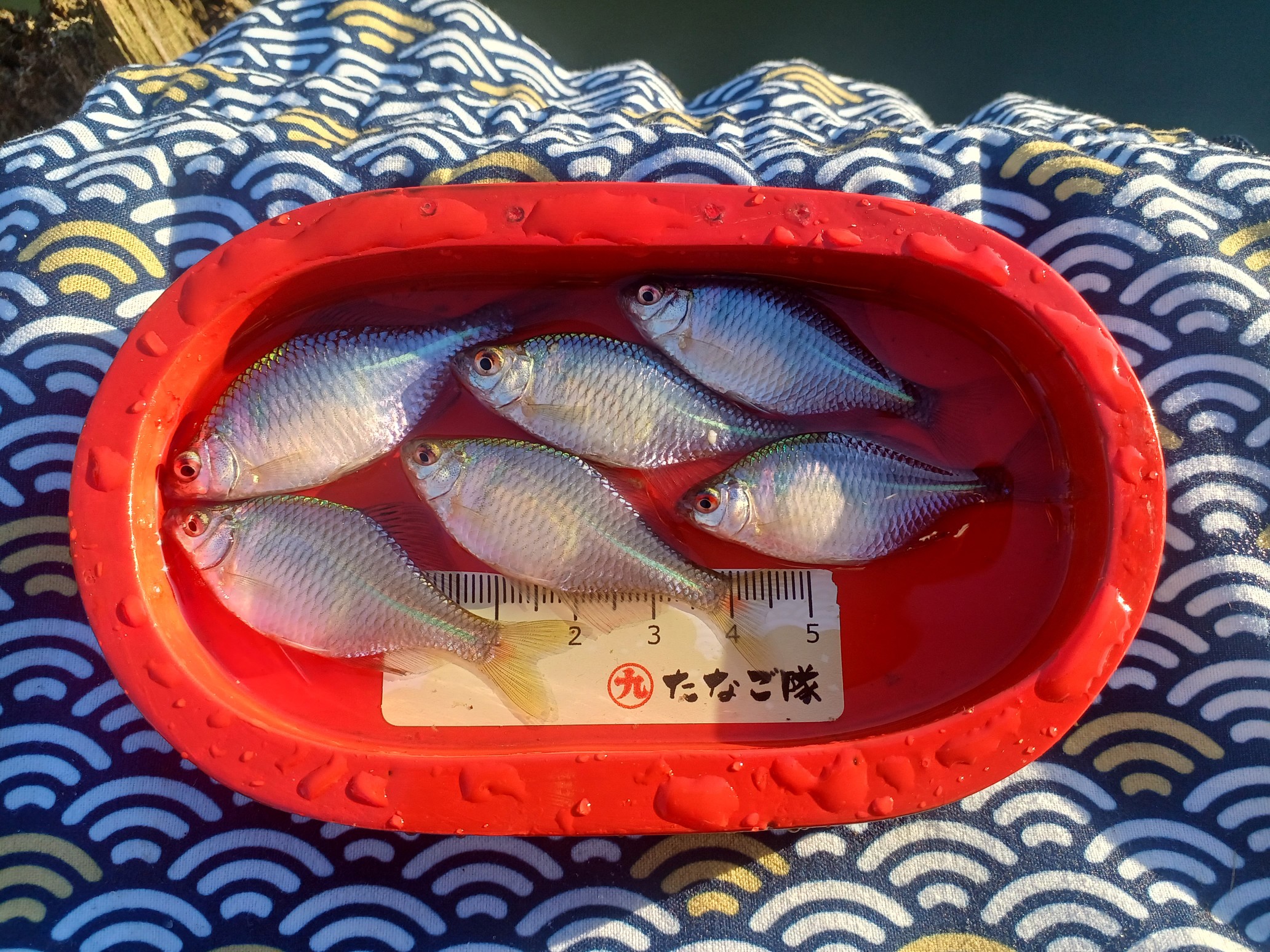 群馬県/某公園 関東地区 2025.10.27 1.ハンドルネーム: スローライフ 様 2.釣行日時: 2025年10月23日 3.場所(県/釣り場名): 群馬県/某公園 4.写真2枚添付 5.使用エサ: グルテン1、 水1 6.使用タックル: 竿:竹竿80cm、 仕掛け:シモリ仕掛け 7.当日のご感想: 秋らしい日でタナゴ釣りでたのしめました。
