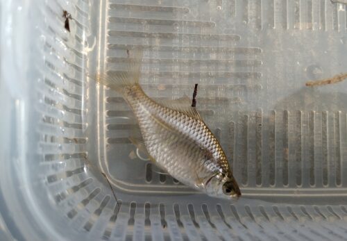 7.当日のご感想: タナゴの他は、クチボソ、小鮒、エビ、ブルーギルを含めて20匹くらいの釣果でした。