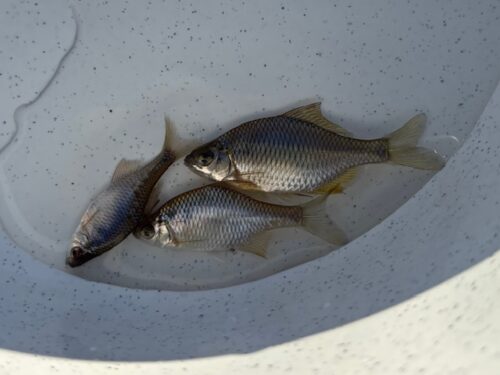 11:00からの暖かい時間帯から開始しましたが、大量のクチボソとの闘いが激しく釣果はタナゴ3匹、小鮒4匹、クチボソ114匹と散々でした。
