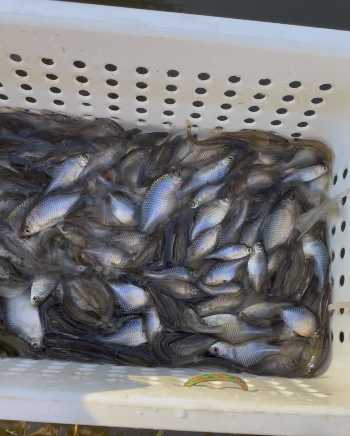 東京都/某公園 関東地区 2025.12.04 1.ハンドルネーム: 苺1号 様 2.釣行日時: 2025年11月24日 3.場所(県/釣り場名): 東京都/某公園 4.写真1枚添付 5.使用エサ: グルテン1 + おかゆ粉 6.使用タックル: 竿:振り出し70cm竿、 仕掛け:自作仕掛け 7.当日のご感想: 暖かく穏やかな一日で久しぶりに数釣りができました。
