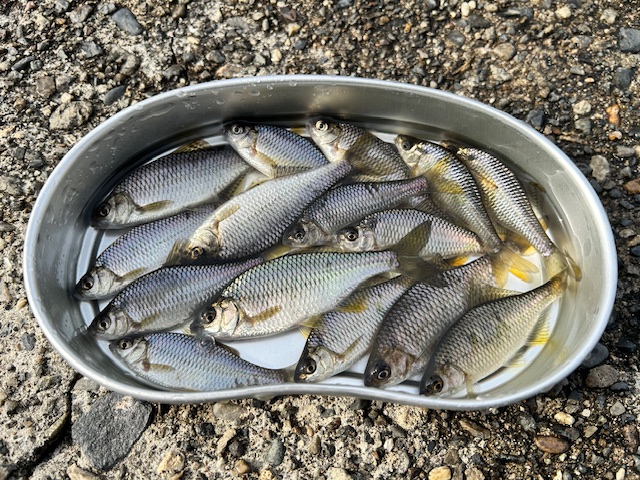 滋賀県/湖北の漁港 近畿地区 2025.12.12 1.ハンドルネーム: かへるくん 様 2.釣行日時: 2025年11月27日 3.場所(県/釣り場名): 滋賀県/湖北の漁港 4.写真1枚添付 5.使用エサ: タナゴグルテン 6.使用タックル: 竿:2.7mテンカラロッド 7.当日のご感想: ブルーギルの猛攻を受けながらも、カネヒラ、シロヒレタビラ がきてくれました。