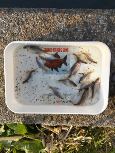 埼玉県/桶川 某用水路 関東地区 2026.03.25 1.ハンドルネーム: ふくろう1950 様 2.釣行日時: 2026年3月24日(火曜日)14時〜16時 3.場所(県/釣り場名): 埼玉県/桶川 某用水路 4.写真1枚添付 5.使用エサ: タナゴグルテン(付属スプーンで1×水1.1)、 マヨネーズ少々 6.使用タックル: 竿:タナゴ竿100cm、 仕掛け:親浮き、シモリ4連、研ぎ針 7.当日のご感想: 今日は暖かいので仕事帰りに寄り道 まだまだ食いは悪いがチビたなごと格闘して何とかツ抜けでお帰りモード😅 野釣りは楽しいね✌️