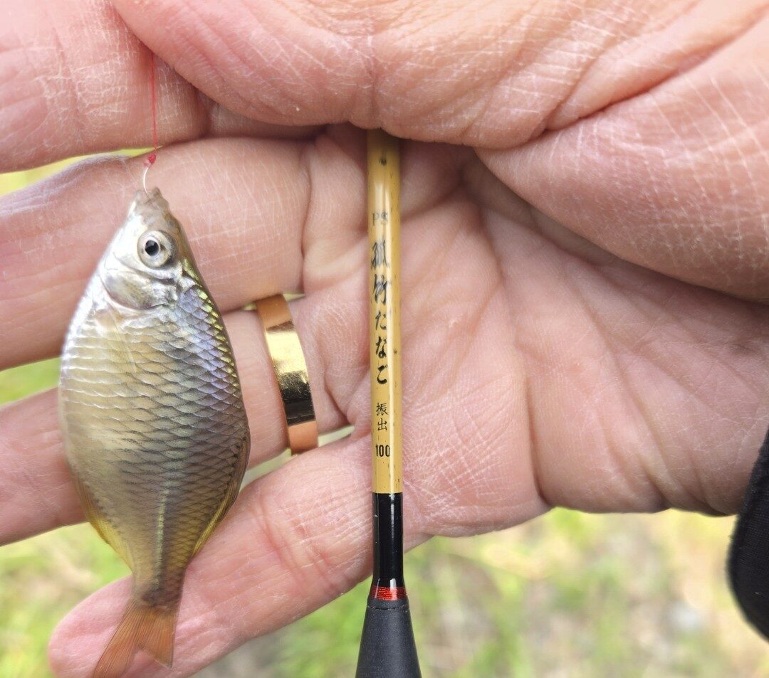 6.使用タックル: 竿:タナゴ竿1m、 ウキ:自作中通しウキ、 仕掛け:シモリ仕掛け