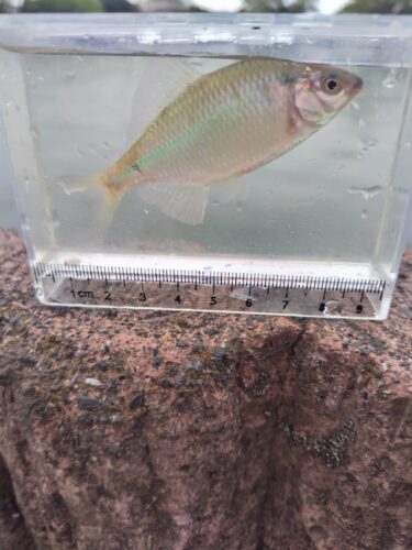 埼玉県/某沼 関東地区 2026.04.06 1.ハンドルネーム: まめぞう 様 2.釣行日時: 2026年4月5日 3.場所(県/釣り場名): 埼玉県/某沼 4.写真1枚添付 5.使用エサ: いもグルテン:1、 わたグル:1 6.使用タックル: 竿:2尺、 仕掛け:自作プロペラ仕掛、 ハリ:自作針 7.当日のご感想: 数は出ませんでしたが、いいサイズのカネヒラが釣れたので満足です。