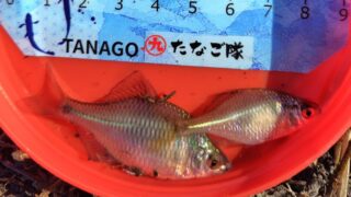 1.ハンドルネーム: Hibiki 様 2.釣行日時: 2026年3月15日(日) 3.場所(県/釣り場名): 埼玉県/某所 4.写真2枚添付 5.使用エサ: タナゴグルテン1 × 水1 6.使用タックル: 竿:市販のタナゴ竿100cm、 仕掛け:市販のウキ 仕掛け 7.当日のご感想: ここのタナゴ達も色が出だして来たようです。