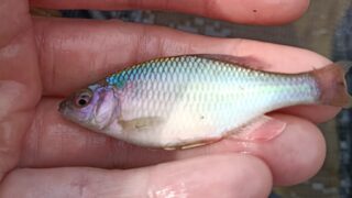 1.ハンドルネーム: ふくろう1950 様 2.釣行日時: 2025年10月19日(日曜日)7時〜11時 3.場所(県/釣り場名): 埼玉県/蓮田市の某池 4.写真2枚添付 5.使用エサ: タナゴグルテン (付属スプーンで1×水1.1 コーヒーミルで微粉砕)、 マヨネーズ少々 6.使用タックル: 竿:タナゴ竿60cm、 仕掛け:親浮き、シモリ5連、市販針 7.当日の感想: 池の工事の中休みに調査をかねて雨降る中お出かけ😅 カネヒラがヒラ打ちの乱舞でバラタナゴの新子も元気でした。 この一番、良い時期に池の工事はつらい😭