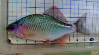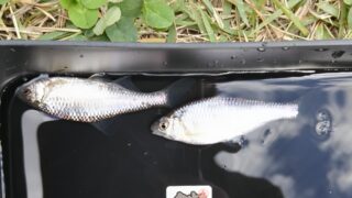 1.ハンドルネーム: tomtom 様 2.釣行日時: 2025年10月28日 3.場所(県/釣り場名): 埼玉県/荒川水系 4.写真3枚添付 5.使用エサ: 黄身練り 6.使用タックル: 竿:1.5m自作カーボン竿、 ウキ:自作ウキ、 ハリ:新半月針 7.当日のご感想: シーズン終盤のためかカネヒラのサイズが小さくなってきました