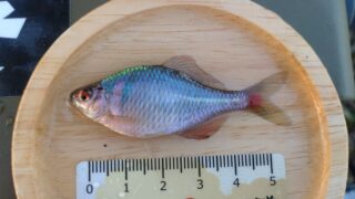 1.ハンドルネーム: 記載なし 様 2.釣行日時: 2025年8月13日 3.場所(県/釣り場名): 茨城県/霞ヶ浦 4.写真1枚添付 5.使用エサ: タナゴグルテン 6.使用タックル: 竿:自作竿50cm 7.当日のご感想: かなり渋かったです。