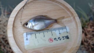 1.ハンドルネーム: はときち 様 2.釣行日時: 2025年10月8日 3.場所(県/釣り場名): 埼玉県/蓮田市の某池 4.写真3枚添付 5.使用エサ: タナゴグルテン:付属スプーン1杯 + 水:1杯と少々 6.使用タックル: 竿:93cmの市販竿、 仕掛け:市販のタナゴ仕掛け+ジンタン目印、 ハリ:市販のタナゴ針 7.当日のご感想: 前回より水が減り濁ってましたが、タナゴが釣れて嬉しかったです。 ゲストにクチボソ、小ブナ、エビも釣れました。