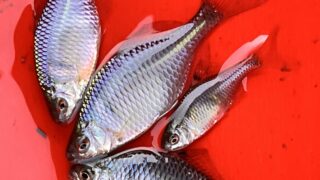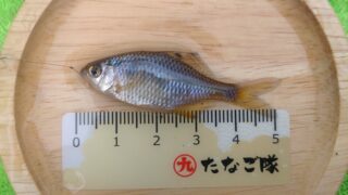 1.ハンドルネーム: おにいちゃん 様 2.釣行日時: 2026年3月7日 3.場所(県/釣り場名): 埼玉県/南部 4.写真1枚添付 5.使用エサ: グルテン1 6.使用タックル: 竿:95cm、 仕掛け:頂いたプロペラ仕掛け 7.当日のご感想: 風が強かった