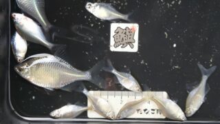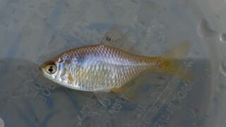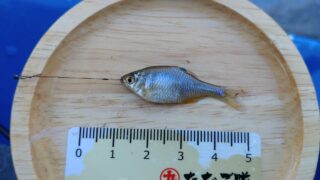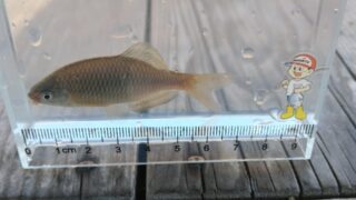 1.ハンドルネーム: tomtom 様 2.釣行日時: 2025年9月29日 3.場所(県/釣り場名): 埼玉県/荒川水系 4.写真2枚添付 5.使用エサ: 黄身練り 6.使用タックル: 竿:135cm自作タナゴ竿、 ウキ:自作ウキ、 ハリ:秋田狐1.5号 7.当日のご感想: アタリが少ない中を粘っていると、いきなり来ました。