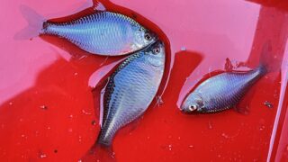 1.ハンドルネーム: ふくろう1950 様 2.釣行日時: 2026年1月1日(木曜日)10時〜14時 3.場所(県/釣り場名): 埼玉県/蓮田市の某池 4.写真2枚添付 5.使用エサ: タナゴグルテン(付属スプーンで1×水1.1) 、 マヨネーズ少々 6.使用タックル: 竿:タナゴ竿70cm、 仕掛け:親浮きとシモリ3連、研ぎ針を使用 7.当日のご感想: 元旦の初釣り、減水でタナゴが全滅する前にあわてての釣行😅 弱った魚を目的にセキレイ、カワセミ、アオサギ、シロサギと多彩😁 更にはカワウソやハクビシンとこれまた動物も集合してお食事…😱 野鳥や動物にはかなわない❗️