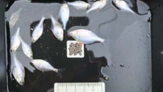 1.ハンドルネーム: こっしー 様 2.釣行日時: 25年11月08日 10~14時 3.場所(県/釣り場名): 埼玉県/岩槻市の用水路 4.写真2枚添付 5.使用エサ: タナゴグルテン + さなぎ粉:少々 6.使用タックル: 竿:120cmタナゴ竿、 仕掛け:自作ウキと自作シモリ、 ハリ:市販の針 7.当日のご感想: 10月20日に投稿済みの場所と同じだが、全ての釣果約70匹に対しタナゴが28匹と良い割合。 当日は風が強く糸が煽られてしまい同じポイントに落とすのに苦労した。