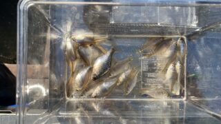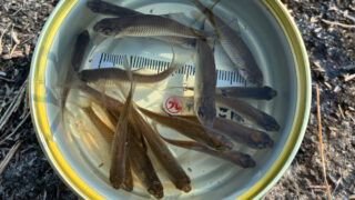 1.ハンドルネーム: 深作豆腐店五代目 様 2.釣行日時: 2025年12月20日 3.場所(県/釣り場名): 埼玉県/某公園水路 4.写真1枚添付 5.使用エサ: ?@おかゆ粉:2+グルテンα21:1+グルテン1:1+蒸しパンチーズ:1 ?A新タナゴグルテン ?B卵の黄身とハチミツで練った小麦粉 6.使用タックル: 竿:グラス90 7.当日のご感想: 障害物周りを重点的に狙った バラタナゴ70クラスの大きな個体は色が着いていた 10?o程度の稚魚の大量群れが確認出来た 釣果四時間150匹